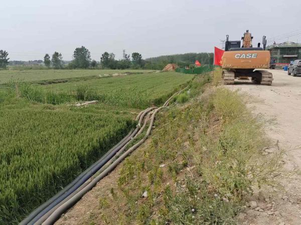 2025年5月1日,蚌埠江河公司安徽省沿淮行蓄洪區(qū)等其他洼地治理工程-沿渦等3片洼地工程總承包施工3標項目部快速反應(yīng),成立抗旱保供專班,抽調(diào)技術(shù)骨干組建黨員突擊隊,與懷遠縣機電灌溉站緊密協(xié)同作戰(zhàn),從安徽省機電排灌總站淮南防汛抗旱設(shè)備庫緊急調(diào)配機電排灌設(shè)備,為受旱鄉(xiāng)鎮(zhèn)搭建臨時抽水泵站,助力群眾抓住農(nóng)時,確保豐收。在首批大功率潛水泵、2000米電纜及配套設(shè)備抵達旱情比較嚴重的懷遠縣龍亢鎮(zhèn)后,項目部爭分奪秒,連夜完成設(shè)備安裝調(diào)試,從拉線到通水僅僅用時12 小時,確保水源能夠及時輸送到田間地頭。